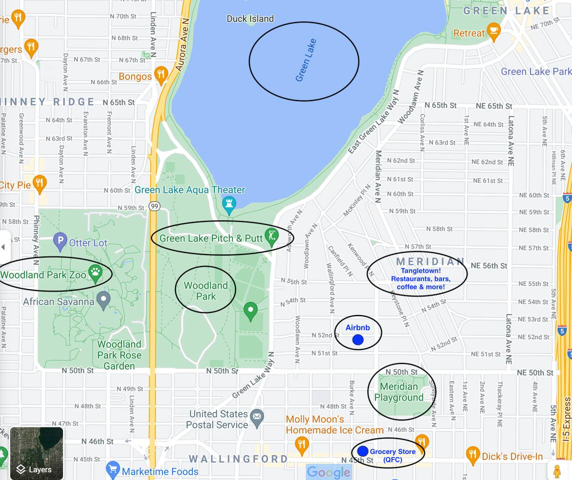 Spacious & warm bungalow in the heart of it all! The perfect home away from home for families or multiple groups traveling together. Just a 5-10 minute walk and you'll find Green Lake, kids playgrounds, coffee shops, bars, golf, food, parks and more (90/100 walk score) ☆ 5 Min Walk to Tangletown Strip ☆ 10 Min Walk to Green Lake ☆ 7 Min Drive to Univ of Wash ☆ 8 Min Drive to Downtown (Times w/o traffic) Come stay with us in Tangletown, one of Seattle's most safe and sought after neighborhoods!