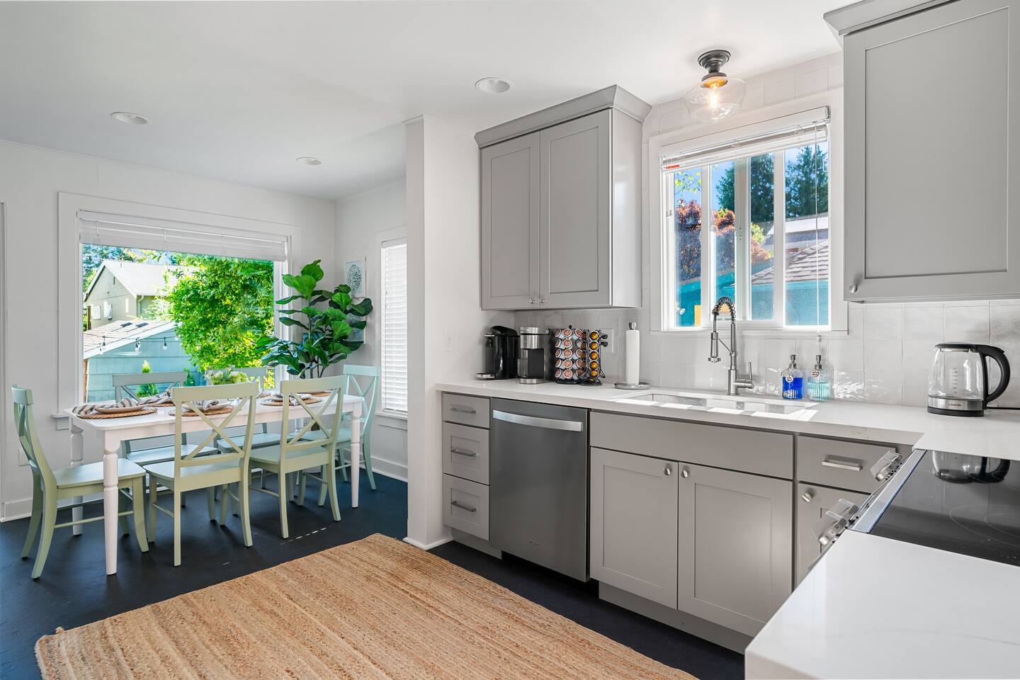 KEY FEATURES: ☀ Sleeps 6; 2 bedrooms upstairs (1 king & 1 queen) and 1 bedroom downstairs (queen) ☀ 2 Bathrooms; 1 with shower/tub combo & 1 with shower ☀ Modern and well-equipped kitchen with seating for 6 guests ☀ Keurig and Nespresso Coffee Machines for our coffee lovers ☀ Resort-style backyard with games and chairs for everyone ☀ 500MB High Speed WiFi throughout the entire home ☀ Rampage Arcade Machine & Air Hockey in basement ☀ Home office setup for remote workers ☀ 2 Large smart TVs with Chromecast for all your streaming needs ☀ Dog-friendly ☀ Additional full kitchen downstairs great for big or multiple groups traveling together ★ It would mean a lot if you added our listing to your wishlist by clicking the ❤️ in the upper right corner! ★ ☆☆ BEDROOMS ☆☆ This Green Lake oasis accommodates 6 guests across 3 cozy bedrooms. The master bedroom is on the main level of the home and is fitted with a king-size bed, 5 drawer dresser & closet for hanging. The 2nd bedroom is on the main level as well; equipped with a queen-size bed, a 6 drawer dresser, closet for hanging and also a work space setup for any remote work that needs to be done. The 3rd bedroom is on the lower level of the home, fitted with a queen-size bed. In this bedroom, you will also find a 6 drawer dresser with a closet for hanging. ☆☆ BATHROOMS ☆☆ There are two full bathrooms in this home. The bathroom upstairs has a shower/tub combo and resides between the two upstairs bedrooms for easy access. The bathroom downstairs has a shower and each of them comes stocked with shampoo, conditioner, body wash and a hair dryer. ☆☆ KITCHEN & LIVING ROOM ☆☆ The bright and airy kitchen upstairs is fully equipped with all the appliances, utensils and cookware you need to feel at home. There are 2 coffee machines (Keurig and Nespresso), toaster, hot water kettle and all your everyday stainless steel appliances. The dining area seats 6 guests at a spacious dining table. There is also a 2nd kitchen downstairs with a full sized fridge & microwave, perfect for big families or multiple groups traveling together. The main level living room is kitted with a mounted 65in smart HDTV and Chromecast, allowing easy access to stream all of your devices. The living room downstairs is setup with a mounted 55in HDTV with Chromecast as well. ★☆ Book Today & Let Us Take Care Of You In Seattle! ☆★