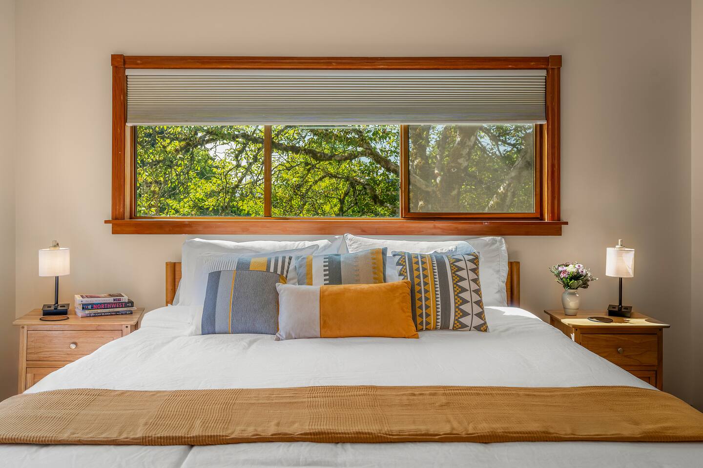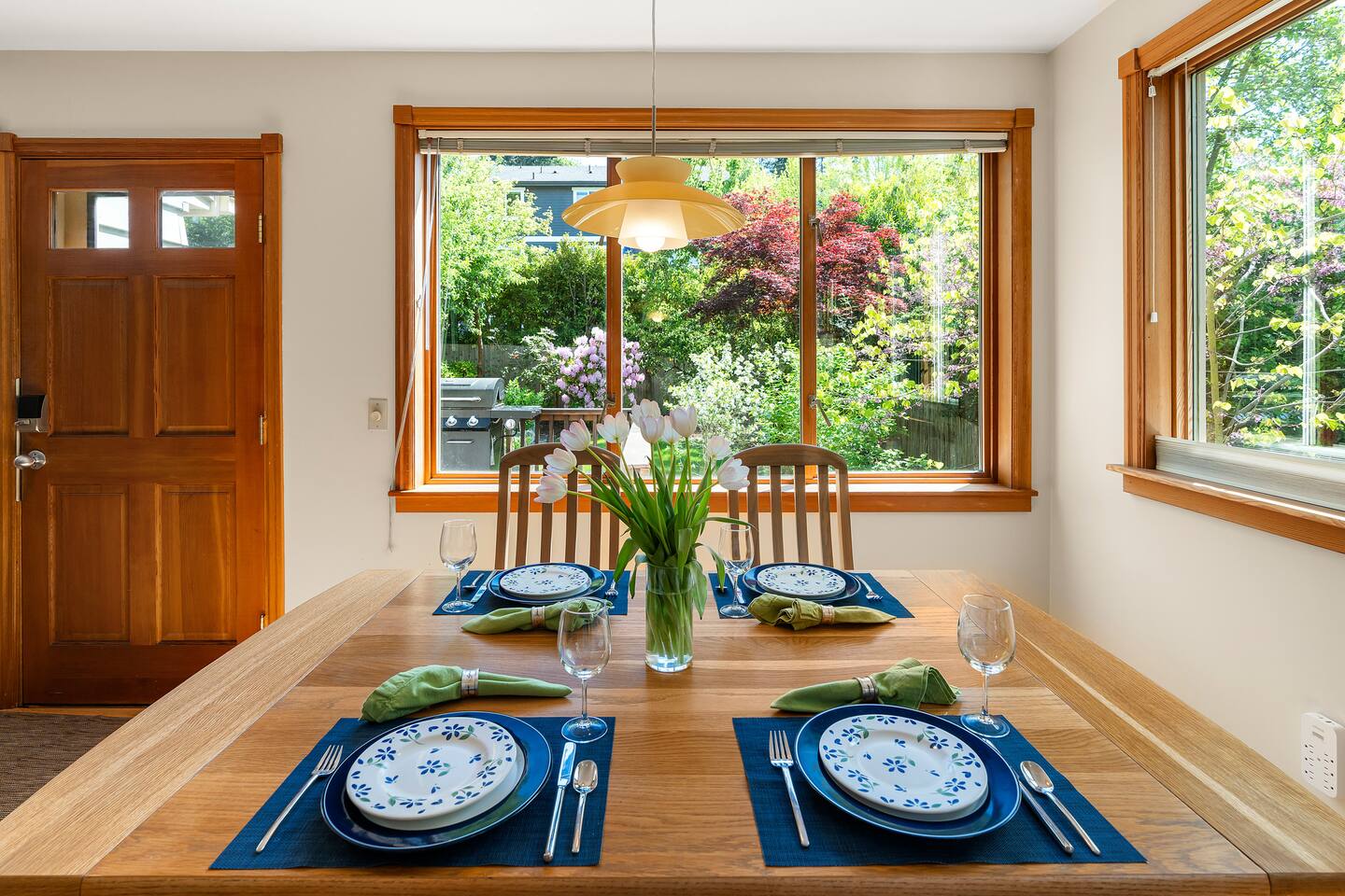 ** New photos coming soon to reflect design improvements and new sleeping arrangement (two twin beds in 3rd bedroom ** KEY FEATURES: ☀ Sleeps 8; 2 bedrooms upstairs (King & queen bed) & 1 bedroom on main floor (2 twins) with additional family room pullout couch (queen) ☀ 2 Bathrooms; 1 with shower/tub combo & 1 with shower ☀ Modern and well-equipped kitchen with seating for 8 guests ☀ Keurig Coffee Machine ☀ Resort-style backyard with games and chairs for everyone ☀ 500MB High Speed WiFi throughout the entire home ☀ Home office setup for remote workers ☀ Smart TV with Roku for all your streaming needs Please note: The home includes a separate basement studio with a private, locked exterior entrance and no access to the guest area. At times it may be occupied long-term, but it never shares or connects to guest spaces. Guests have full privacy in all areas listed in this booking. ☆☆ BEDROOMS ☆☆ This Tranquil Retreat accommodates 8 guests across 3 cozy bedrooms. The master bedroom is on the upper level of the home and is fitted with a king-size bed, 5 drawer dresser & large closet. The 2nd bedroom is on the upper level as well; equipped with a queen-size bed and large closet. The 3rd bedroom is on the main level of the home, fitted with a 2 twin-size beds. Lastly, the family room on the main level has a pull out couch to sleep 2 guests in the queen mattress. ☆☆ BATHROOMS ☆☆ There are two full bathrooms in this home. The bathroom upstairs has a shower/tub combo while the bathroom downstairs has a shower. Each of them comes stocked with shampoo, conditioner, body wash and a hair dryer. ☆☆ KITCHEN ☆☆ The bright and airy kitchen is fully equipped with all the appliances, utensils and cookware you need to feel at home. There is a Keurig coffee machine, toaster, hot water kettle and all your everyday stainless steel appliances. The dining table seats 6 guests while there are 2 additional bar stools at the island counter top. ☆☆ LIVING ROOM ☆☆ The living room is kitted with a smart TV & Roku Stick for all your streaming needs! ☆☆ It would mean a lot if you added our listing to your wishlist by clicking the ❤️ in the upper right corner! ☆☆ ★☆ Book Today & Let Us Take Care Of You In Seattle! ☆★
