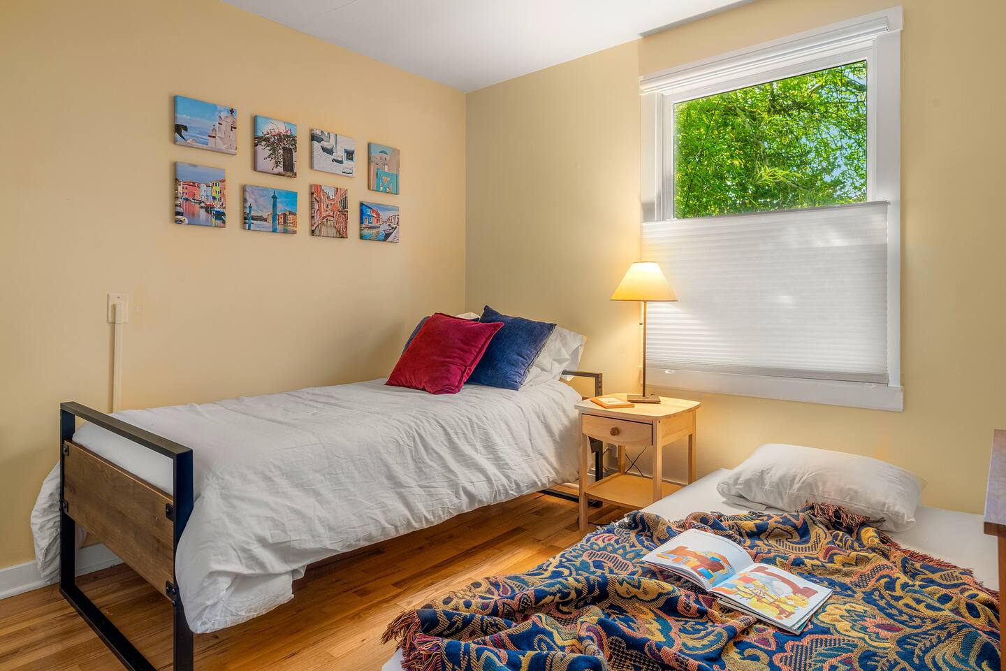 You will have access to the main and upper floors of the house, along with the laundry room in the basement where detergent is provided. There is a separate apartment in the basement of the house, however there is a separate entrance to this unit and the tenant, who is rarely in town, does not have access to the laundry room, exterior space or any other areas of the house that you do doing your stay. The home is fitted with a smart lock for the front door and a code will be sent out a few nights before arrival for a smooth check-in process. There is a driveway on the left side of the house you are free to use. There is also street parking available, however you may only park on the west side of the street as explained by the signs. We look forward to welcoming you to our house!