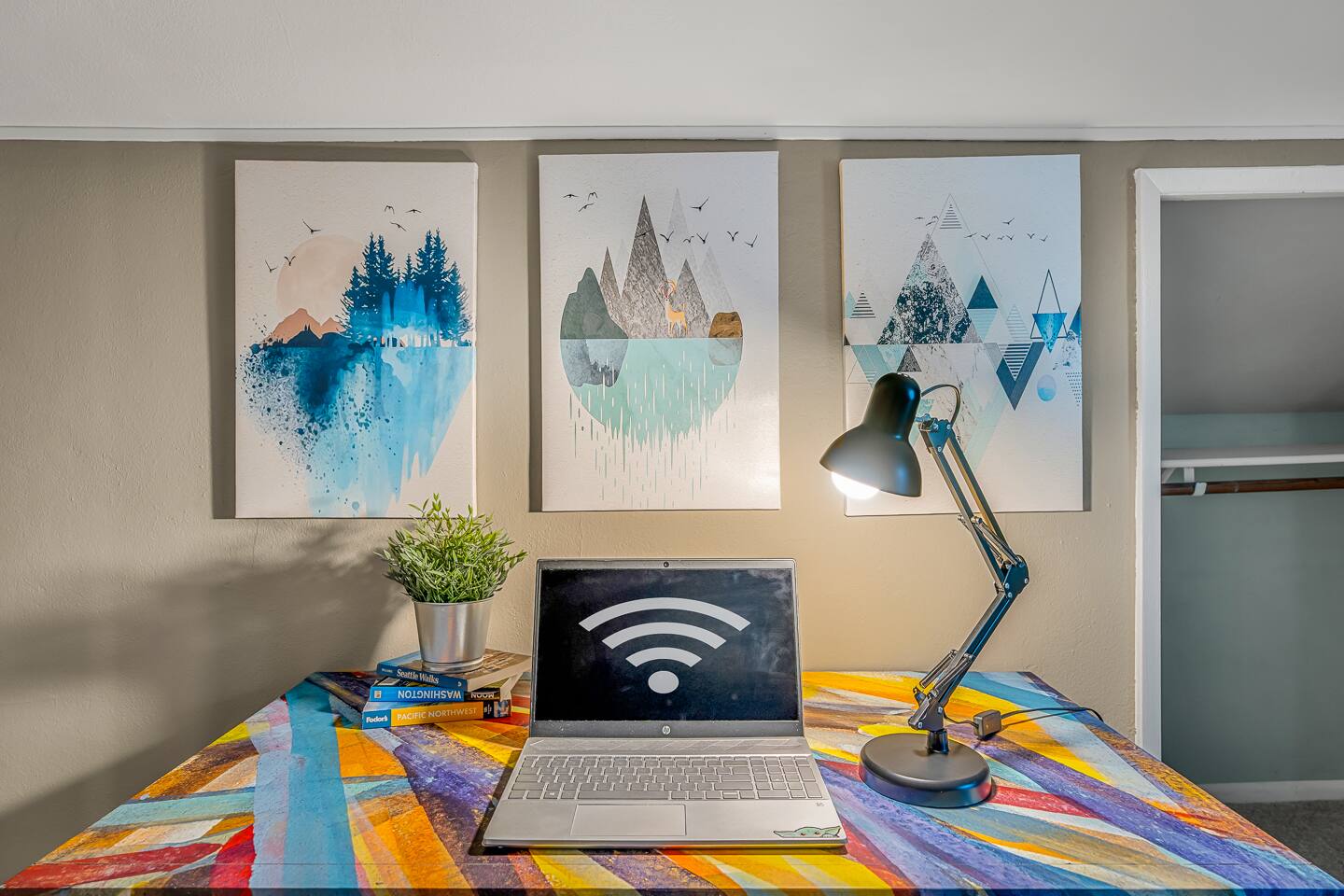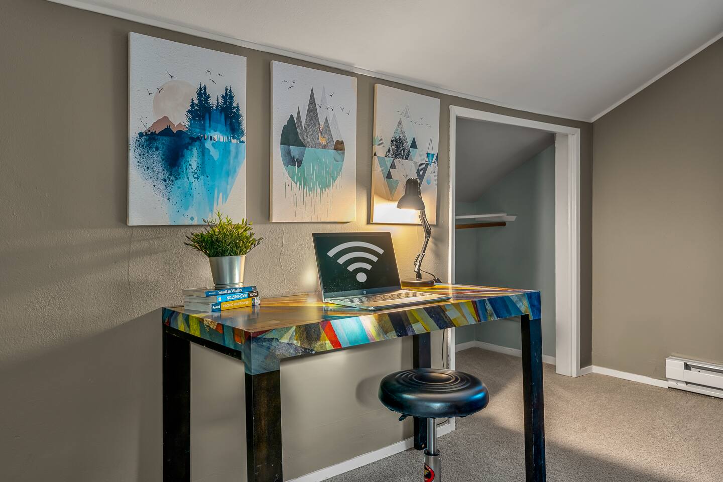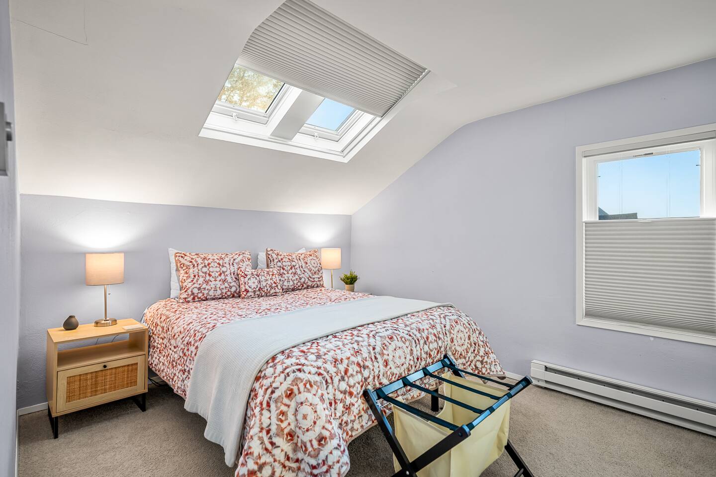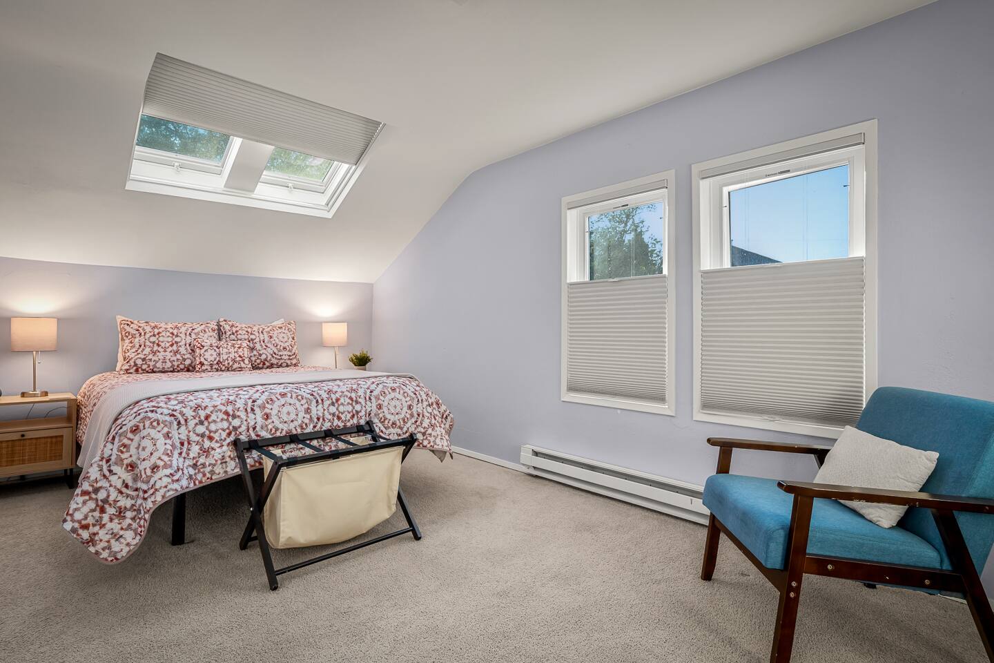Key Features: ✓ Spacious 5-bedroom home with multiple living areas, office, playroom, and workout space ✓ Fully equipped chef’s kitchen + dining area ✓ Dog-friendly: crate, bed, and fully fenced backyard included ✓ Family-friendly: pack & play, highchair, board games, and books provided ✓ Outdoor dining patio with propane BBQ, fire pit, and lounge seating ✓ 2 TVs, Echelon bike, paddleboard, lifejackets, and wagon included ✓ A/C (central + portable unit upstairs) for year-round comfort ✓ Plenty of free street parking right in front of the house ✓ Fireplace in the living room is decorative only (not for guest use) ☆☆ SLEEPING ARRANGEMENTS ☆☆ ✩ Bedroom 1 (Main Floor): King-size bed (white bed with green and blue pillows + green blanket), located near the living areas. Easy access to main floor bathroom with shower/tub combo. ✩ Bedroom 2 (Main Floor – Family/TV Room): Blue sectional sofa pulls out to a queen-size bed. Great for kids, teens, or additional guests. ✩ Bedroom 3 (Basement): Large quiet retreat with queen-size bed and workspace, near bathroom and workout/laundry area. ✩ Bedroom 4 (Top Floor – Skylight Bedroom): Bright and airy with a queen-size bed. A portable A/C unit (vented year-round) is in this room. ✩ Bedroom 5 (Top Floor – Playroom): Small blue couch pulls out into a twin-size bed, perfect for kids or single guests. ✩ Workspace Room (Top Floor): Dedicated office with three framed pictures above the desk. No bed in this room. ☆☆ BATHROOMS ☆☆ ✩ Bathroom 1 (Main Floor): Features a full shower/tub combo, making it convenient for families with children or guests who prefer a relaxing bath. ✩ Bathroom 2 (Basement) Equipped with a walk-in shower, located just steps from the basement bedroom and gym/laundry area. ☆☆ KITCHEN, LIVING & DINING ☆☆ The chef’s kitchen is fully stocked for cooking and entertaining. The dining area and living room provide comfortable gathering spaces. Living Room (Main Floor): Spacious and cozy, note that the fireplace is decorative only. Family/TV Room (Main Floor): Blue sectional sofa + TV. Dining Area: Located next to the kitchen with easy access to outdoor patio. Outdoor Patio & Yard: Dining table, propane BBQ, fire pit, and seating area. Fully fenced, perfect for dogs. ☆☆ OFFICE ☆☆ Top-floor private workspace ideal for remote work or study. ☆☆ WORKOUT ROOM☆☆ Located in the basement with exercise equipment including an Echelon bike. Laundry (washer + dryer) is also here for guest use. ☆☆ FAMILY FRIENDLY FEATURES ☆☆ Pack & play Highchair Board games & books ☆ ☆ ADDITIONAL AMENITIES ☆ ☆ Fully fenced backyard — perfect for dogs and outdoor lounging Dog-friendly with crate and pet bed Board games & books for guest use Pack and play & highchair for families Paddleboard, lifejackets, and wagon available for lake days ☆ ☆NEARBY ATTRACTIONS☆ ☆ ✩ Woodland Park Zoo – A 92-acre conservation-focused zoo, perfect for families and kids. ✩ Gas Works Park – Enjoy sweeping city and lake views from this unique picnic-friendly green space. ✩ Kerry Park – Capture postcard-perfect views of the Seattle skyline and Mount Rainier. ✩ Discovery Park – Seattle’s largest green space with beaches, trails, and scenic overlooks. ✩ Space Needle & Chihuly Garden and Glass – Iconic landmarks showcasing stunning city views and world-famous glass art. Note: There is a decorative fireplace in the living room that is not available for guest use. Fireplace in living room is decorative only (not for guest use). Central A/C is available throughout most of the home; upstairs skylight bedroom includes an additional portable A/C unit that stays year-round. Free street parking is readily available directly in front of the home. ★ Add this Green Lake Retreat to your wish list by tapping the ❤️ in the top right corner! ★ ★★ Book your Seattle stay today — comfort, convenience, and fun await! ★★