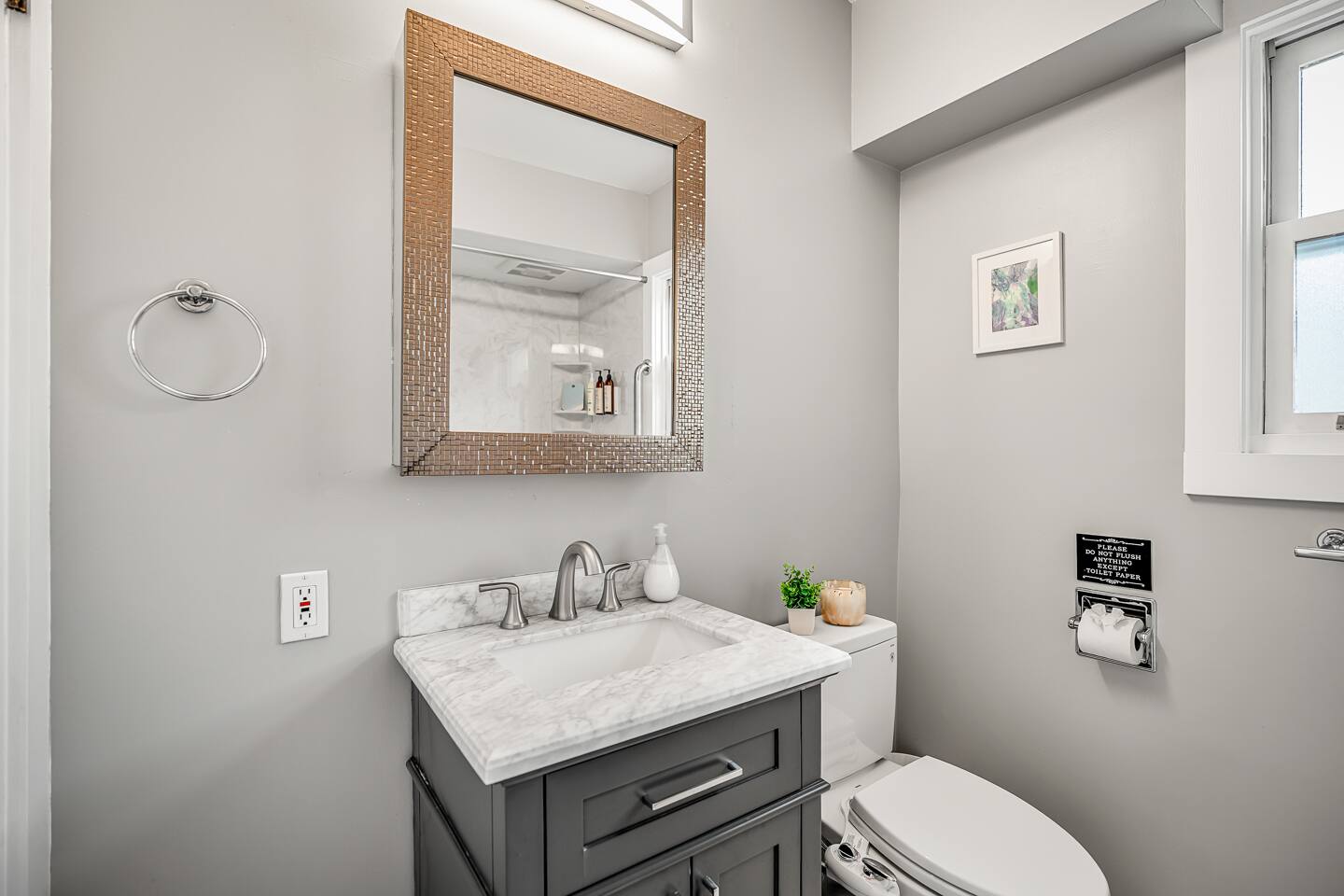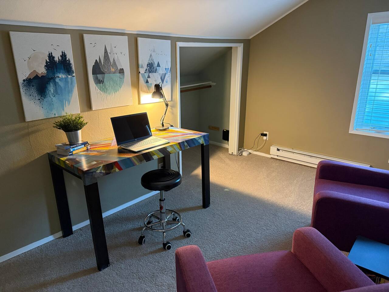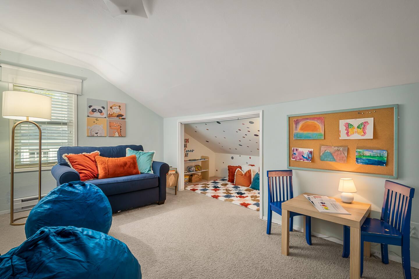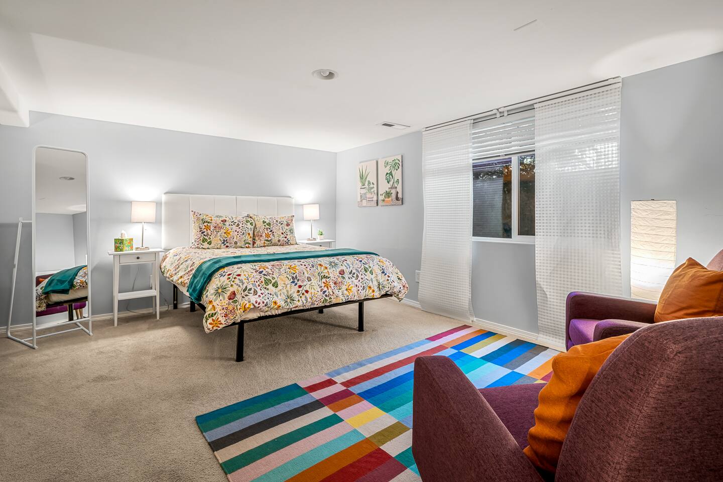 Key Features: ✓ Spacious 5-bedroom home with multiple living areas, office, playroom, and workout space ✓ Fully equipped chef’s kitchen + dining area ✓ Dog-friendly: crate, bed, and fully fenced backyard included ✓ Family-friendly: pack & play, highchair, board games, and books provided ✓ Outdoor dining patio with propane BBQ, fire pit, and lounge seating ✓ 2 TVs, Echelon bike, paddleboard, lifejackets, and wagon included ✓ A/C (central + portable unit upstairs) for year-round comfort ✓ Plenty of free street parking right in front of the house ✓ Fireplace in the living room is decorative only (not for guest use) ☆☆ SLEEPING ARRANGEMENTS ☆☆ ✩ Bedroom 1 (Main Floor): King-size bed (white bed with green and blue pillows + green blanket), located near the living areas. Easy access to main floor bathroom with shower/tub combo. ✩ Bedroom 2 (Main Floor – Family/TV Room): Blue sectional sofa pulls out to a queen-size bed. Great for kids, teens, or additional guests. ✩ Bedroom 3 (Basement): Large quiet retreat with queen-size bed and workspace, near bathroom and workout/laundry area. ✩ Bedroom 4 (Top Floor – Skylight Bedroom): Bright and airy with a queen-size bed. A portable A/C unit (vented year-round) is in this room. ✩ Bedroom 5 (Top Floor – Playroom): Small blue couch pulls out into a twin-size bed, perfect for kids or single guests. ✩ Workspace Room (Top Floor): Dedicated office with three framed pictures above the desk. No bed in this room. ☆☆ BATHROOMS ☆☆ ✩ Bathroom 1 (Main Floor): Features a full shower/tub combo, making it convenient for families with children or guests who prefer a relaxing bath. ✩ Bathroom 2 (Basement) Equipped with a walk-in shower, located just steps from the basement bedroom and gym/laundry area. ☆☆ KITCHEN, LIVING & DINING ☆☆ The chef’s kitchen is fully stocked for cooking and entertaining. The dining area and living room provide comfortable gathering spaces. Living Room (Main Floor): Spacious and cozy, note that the fireplace is decorative only. Family/TV Room (Main Floor): Blue sectional sofa + TV. Dining Area: Located next to the kitchen with easy access to outdoor patio. Outdoor Patio & Yard: Dining table, propane BBQ, fire pit, and seating area. Fully fenced, perfect for dogs. ☆☆ OFFICE ☆☆ Top-floor private workspace ideal for remote work or study. ☆☆ WORKOUT ROOM☆☆ Located in the basement with exercise equipment including an Echelon bike. Laundry (washer + dryer) is also here for guest use. ☆☆ FAMILY FRIENDLY FEATURES ☆☆ Pack & play Highchair Board games & books ☆ ☆ ADDITIONAL AMENITIES ☆ ☆ Fully fenced backyard — perfect for dogs and outdoor lounging Dog-friendly with crate and pet bed Board games & books for guest use Pack and play & highchair for families Paddleboard, lifejackets, and wagon available for lake days ☆ ☆NEARBY ATTRACTIONS☆ ☆ ✩ Woodland Park Zoo – A 92-acre conservation-focused zoo, perfect for families and kids. ✩ Gas Works Park – Enjoy sweeping city and lake views from this unique picnic-friendly green space. ✩ Kerry Park – Capture postcard-perfect views of the Seattle skyline and Mount Rainier. ✩ Discovery Park – Seattle’s largest green space with beaches, trails, and scenic overlooks. ✩ Space Needle & Chihuly Garden and Glass – Iconic landmarks showcasing stunning city views and world-famous glass art. Note: There is a decorative fireplace in the living room that is not available for guest use. Fireplace in living room is decorative only (not for guest use). Central A/C is available throughout most of the home; upstairs skylight bedroom includes an additional portable A/C unit that stays year-round. Free street parking is readily available directly in front of the home. ★ Add this Green Lake Retreat to your wish list by tapping the ❤️ in the top right corner! ★ ★★ Book your Seattle stay today — comfort, convenience, and fun await! ★★